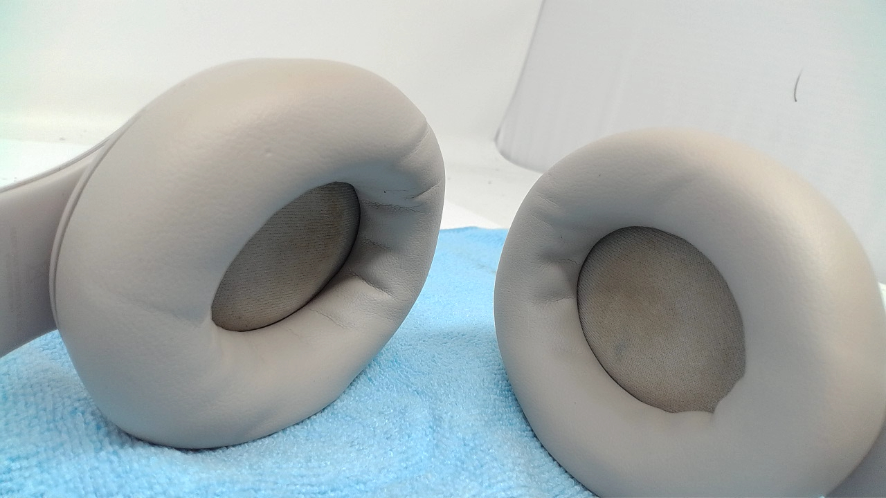 This is a pair of Beats Studio Pro Headphones in Sandstone color. The headphones work fine and connect to a device and both ears play audio. The inner earpads coverings on both sides are dirty. The photos are indicative of the dirty earpads but may not be the exact pair you receive as we have several of these headphones available in the same condition. Other than the dirty earpads, the headphones are in good condition. As they are used they may have small nicks or scratches and some light sticker residue.