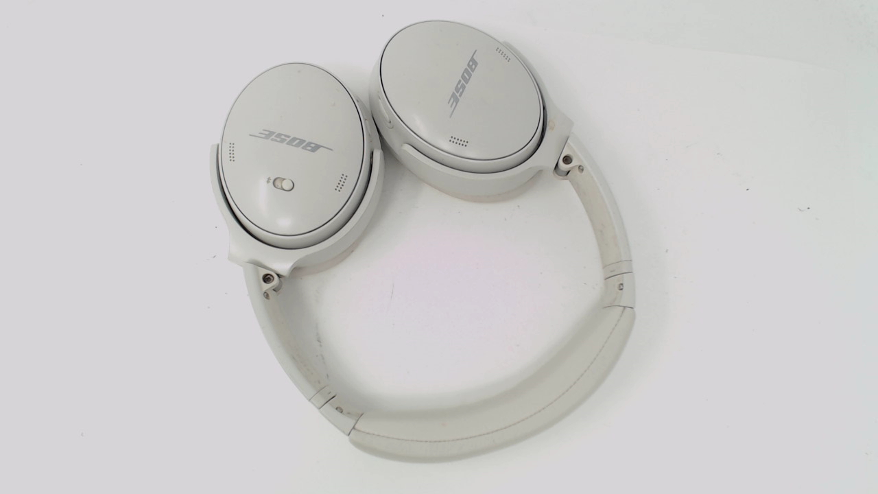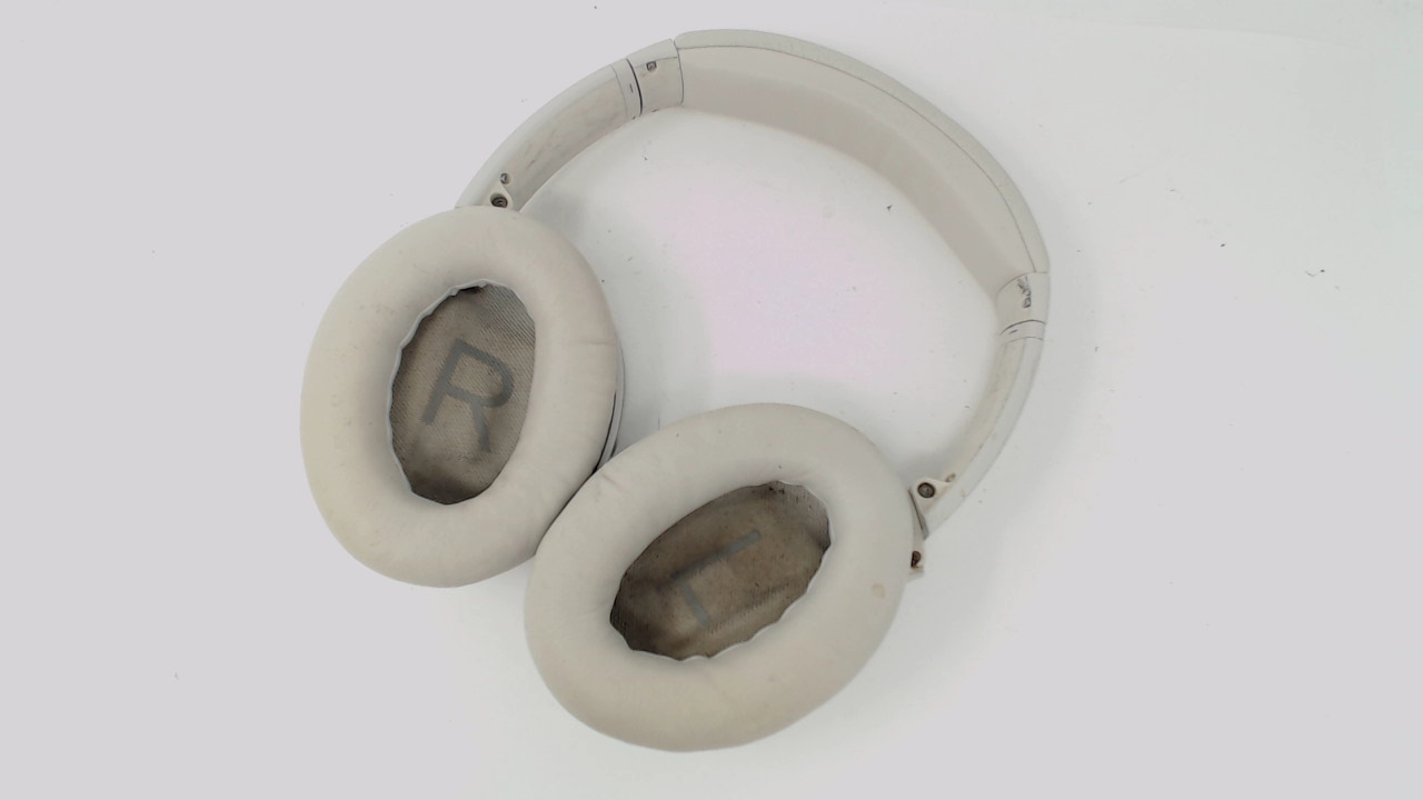 Includes headphones only. No AC adapter, audio cables, other cables, cases, manuals, original packaging or anything else at all included. Plays music fine. There is some wear and discoloration on the plastic and the headband. The ear pads have some wrinkles and wear but there are no rips or exposed foam.