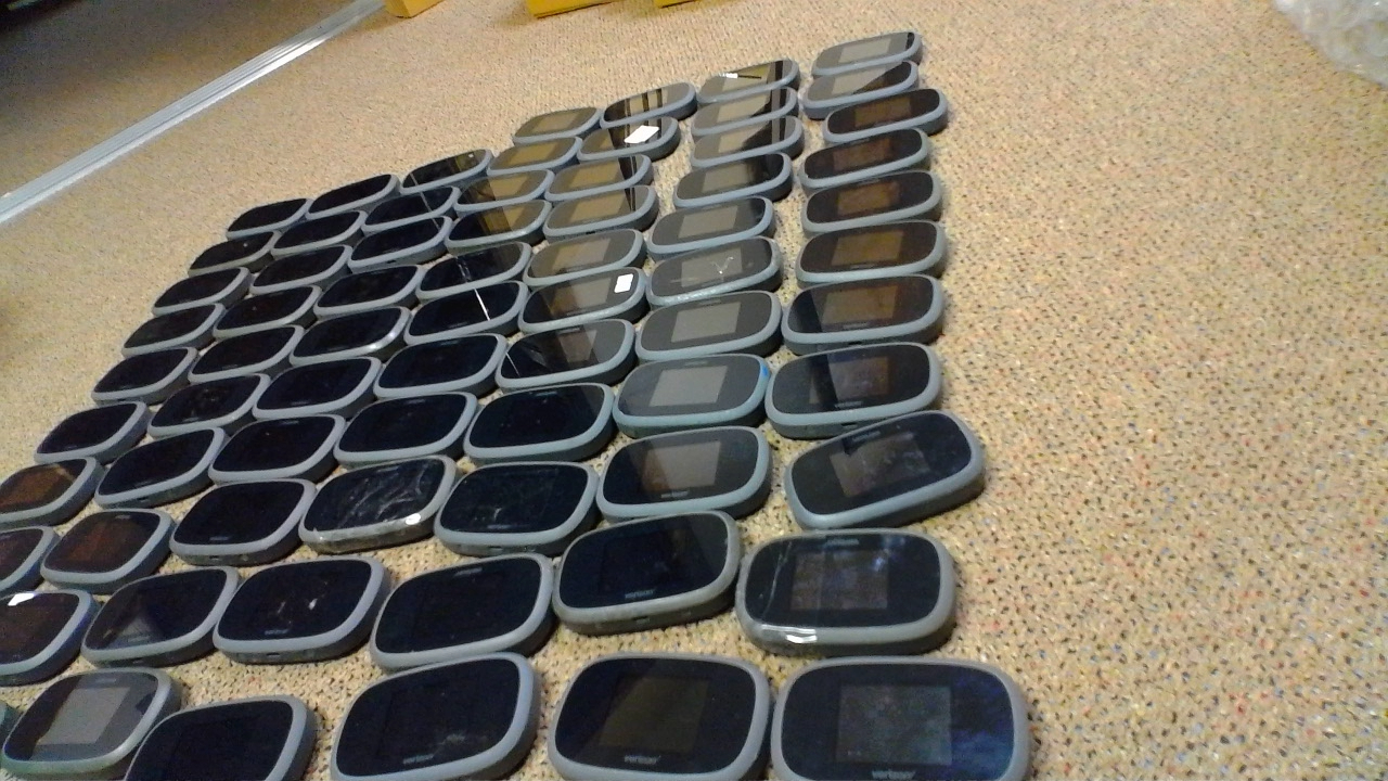 This is a lot of 74 untested Jetpack Mifi 8800L units. As these are untested they are being sold as non-working, but the majority will work. One or two units may be missing the battery. Four of the units have cracked glass. Some will likely have bad ESNs. As they are used, they will have scuffs, scratches nicks and some will have some stickers or sticker residue.