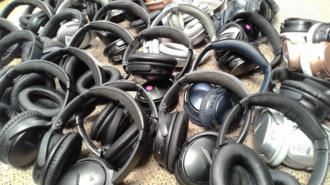 This is a lot of 33 Bose QC35 Series 2 Headphones. The headphones are functional and work but have various cosmetic issues from worn or missing earpads to worn headbands, scratches, etc. Many will have stickers and sticker residue. The lot is being sold as non-working due to the varying cosmetic conditions of the headphones.