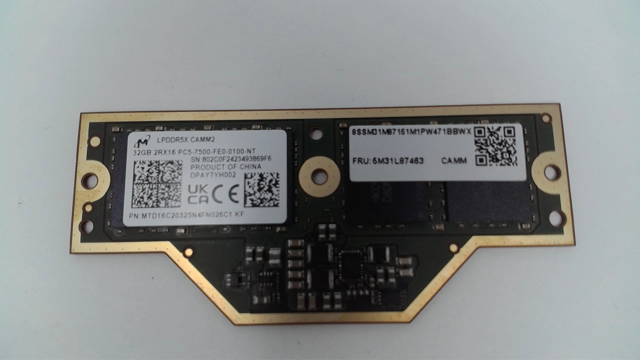 This is a Lenovo 32GB LPDDR5X 7500 MHz LPCAMM2 Memory Module, For ThinkPad P1 Gen 7,8