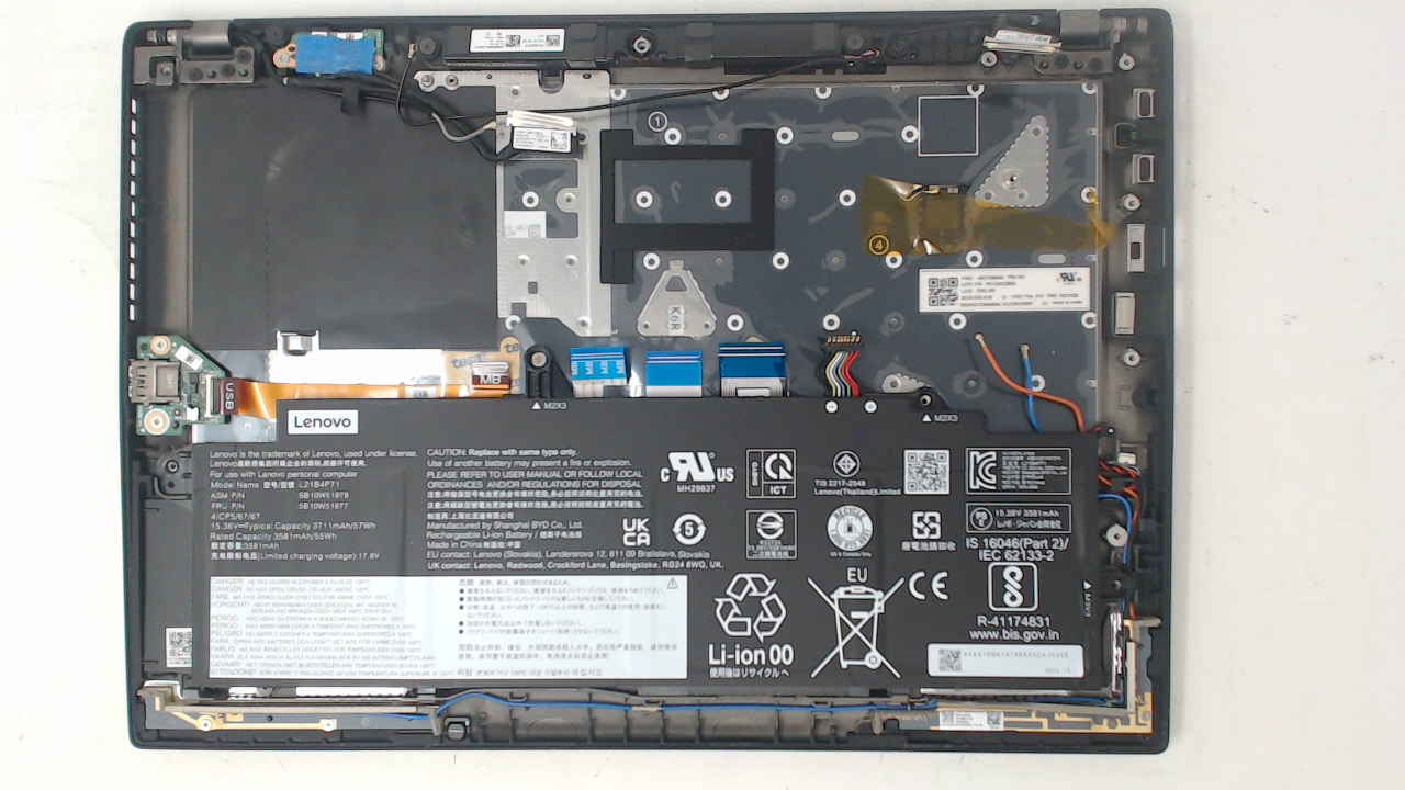 Includes laptop parts only. No logic board is included. No power adapter included. No bottom pan is included. No other accessories are included. If an optional upgrade is not specified, assume it is not included. Display case has light wear such as scratches, sticker residue, scuffs, and nicks. Display has light wear such as scratches and scuffs from keyboard. Keyboard and trackpad have light wear such as scratches and scuffs. Topcase has light wear such as scratches, scuffs, and nicks. All parts included are functional.
