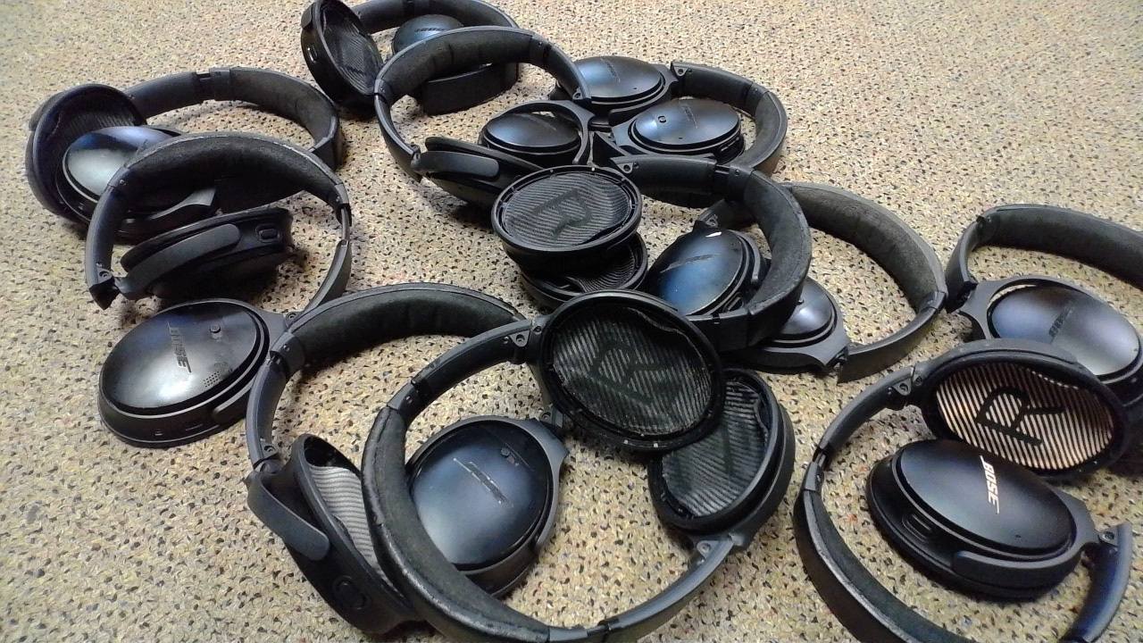 This is a lot of 10 pairs of used Bose QC 35 Series 2 Black Headphones. All have been tested to verify they connect to a device and both ears produce audio. All of the headphones are missing earpads and the headbands will have some wear. As they are used, the casings will have some wear and scratches. Some of them will have sticker residue as well.