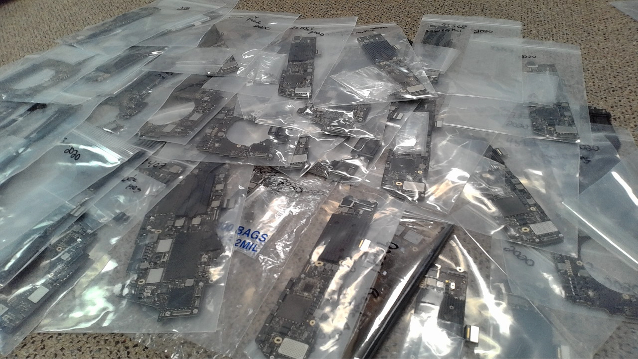 This is a lot of 33 non-working Apple 2020 logic boards from various systems. All are locked in some way either IC, Firmware, or MDM remote management and therefore do NOT WORK. Most but not all include the fingerprint sensor. This lot is being sold as-is for harvesting components or gold off the boards.