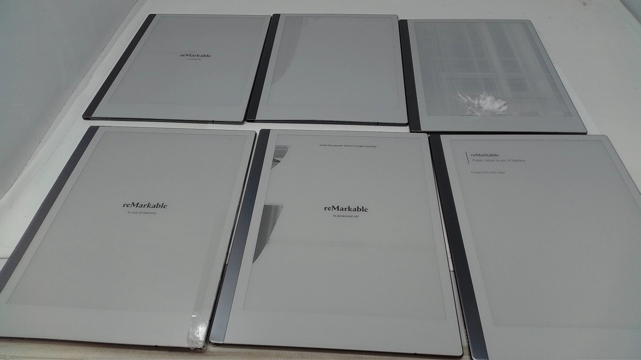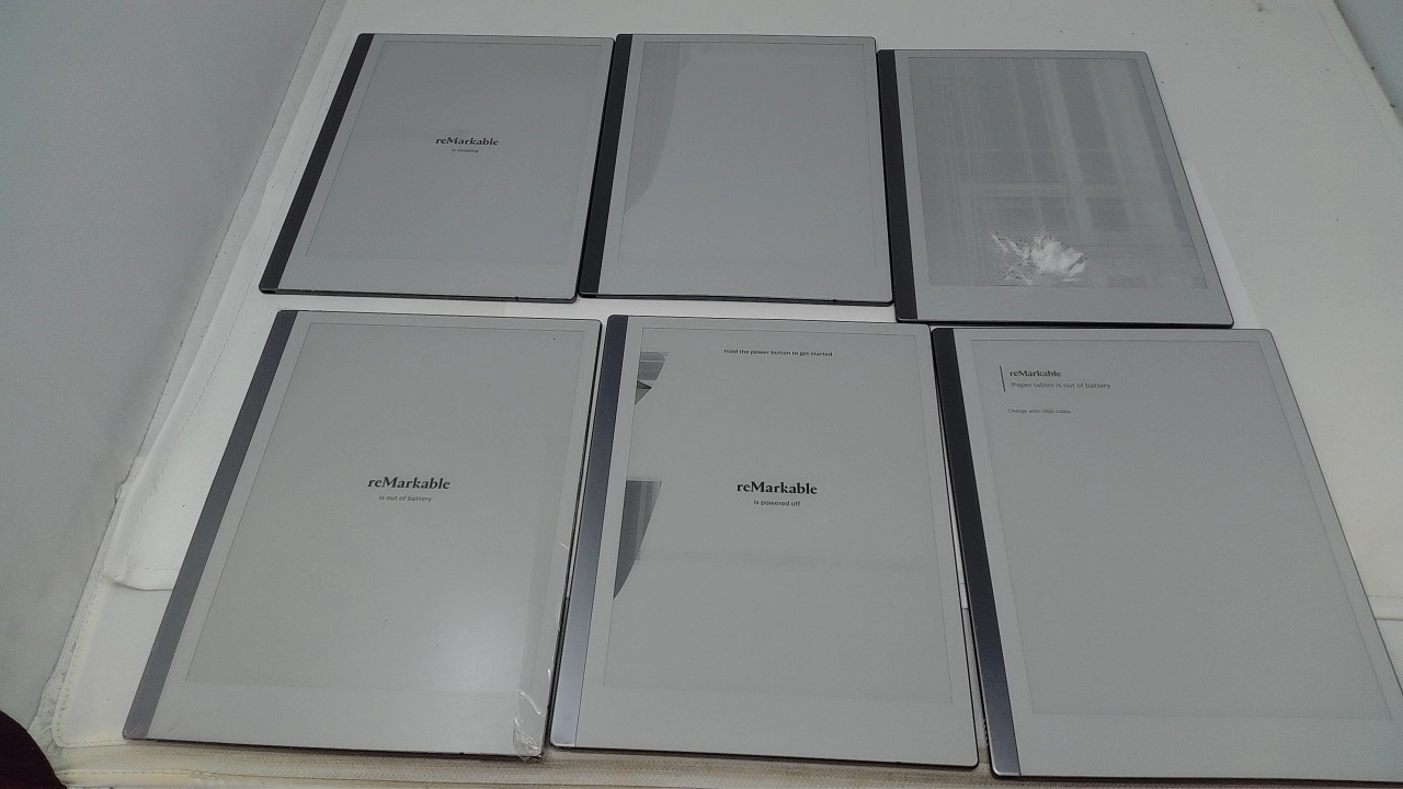 This is a lot of 6 Remarkable 2 tablets which are broken and to be used for parts. 5 have broken screens and one is stuck in a boot loop.