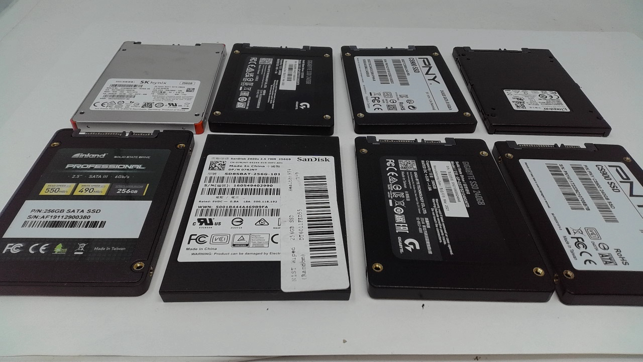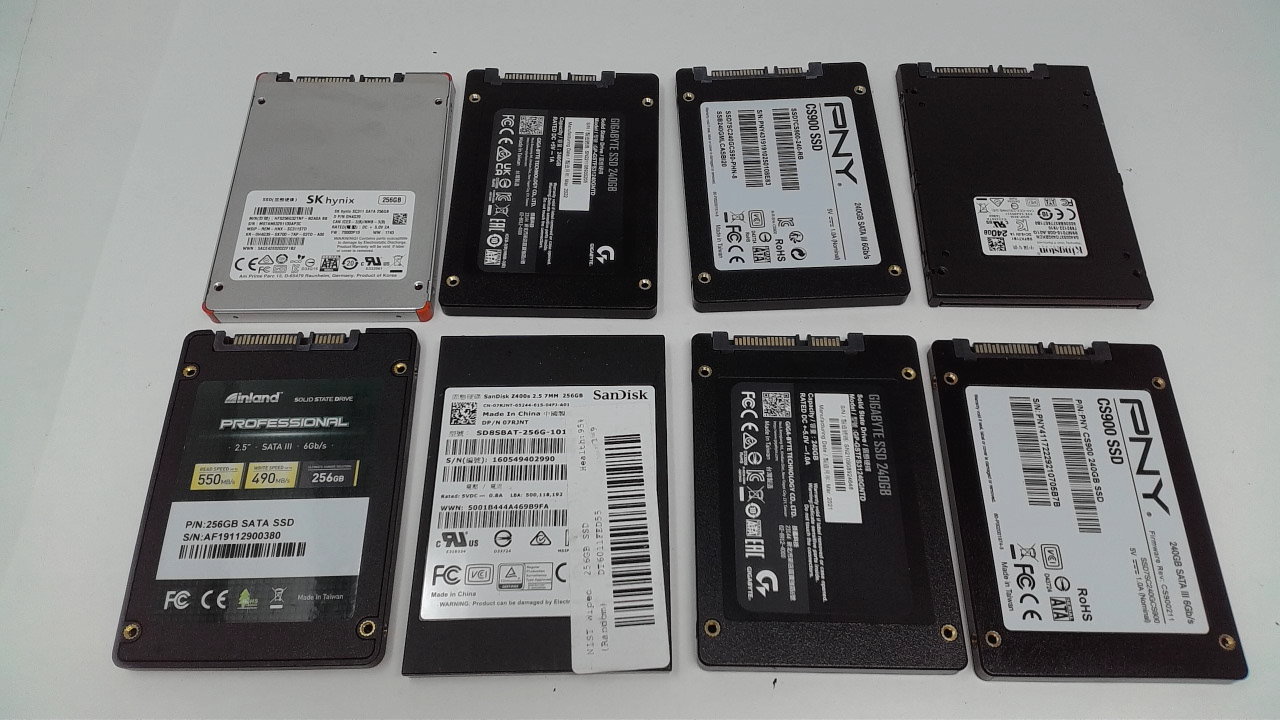 This is a Lot of 8 256GB Sata 2.5" Laptop SSD Drive Mixed Brands that have been tested working.