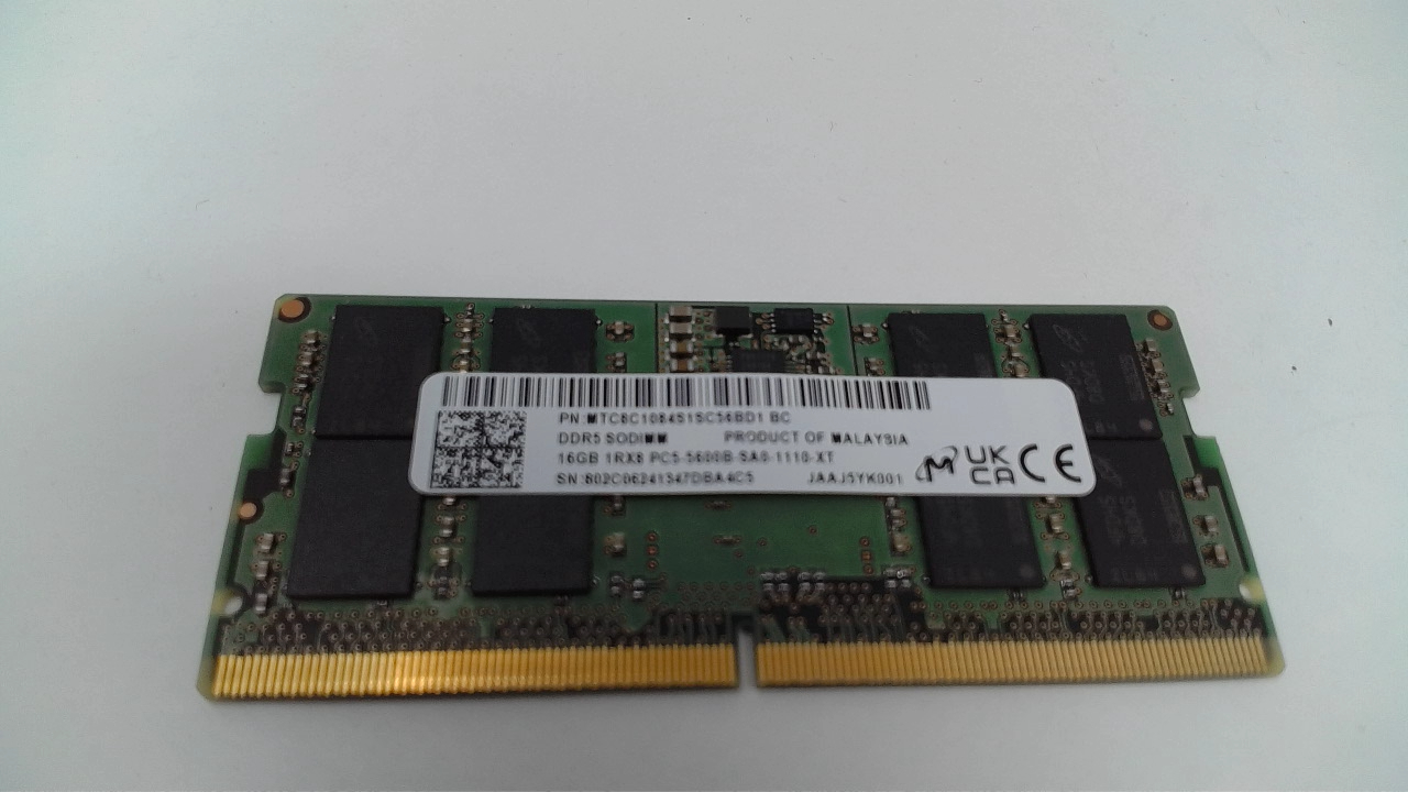 This is a single stick of Micron 16GB DDR5-5600 1Rx8 Laptop SODIMM RAM MTC8C1084S1SC56BD1